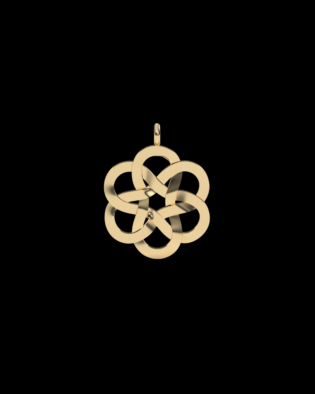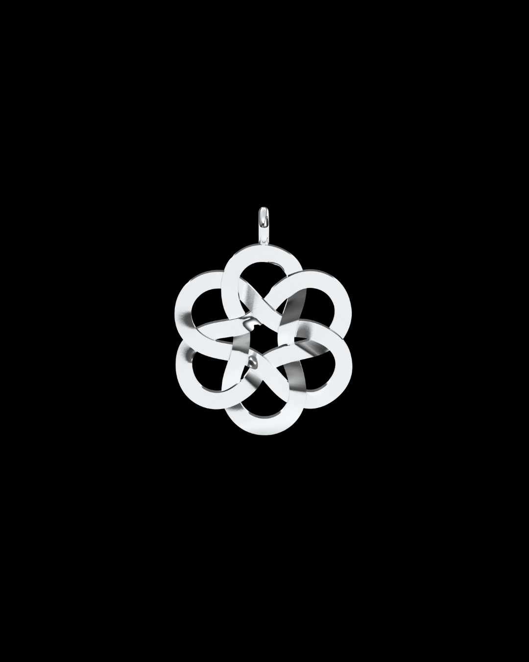 Delicately interwoven in a continuous loop, this pendant symbolizes unity, balance, and infinite grace. Its flower-like form reflects the beauty of connection.
