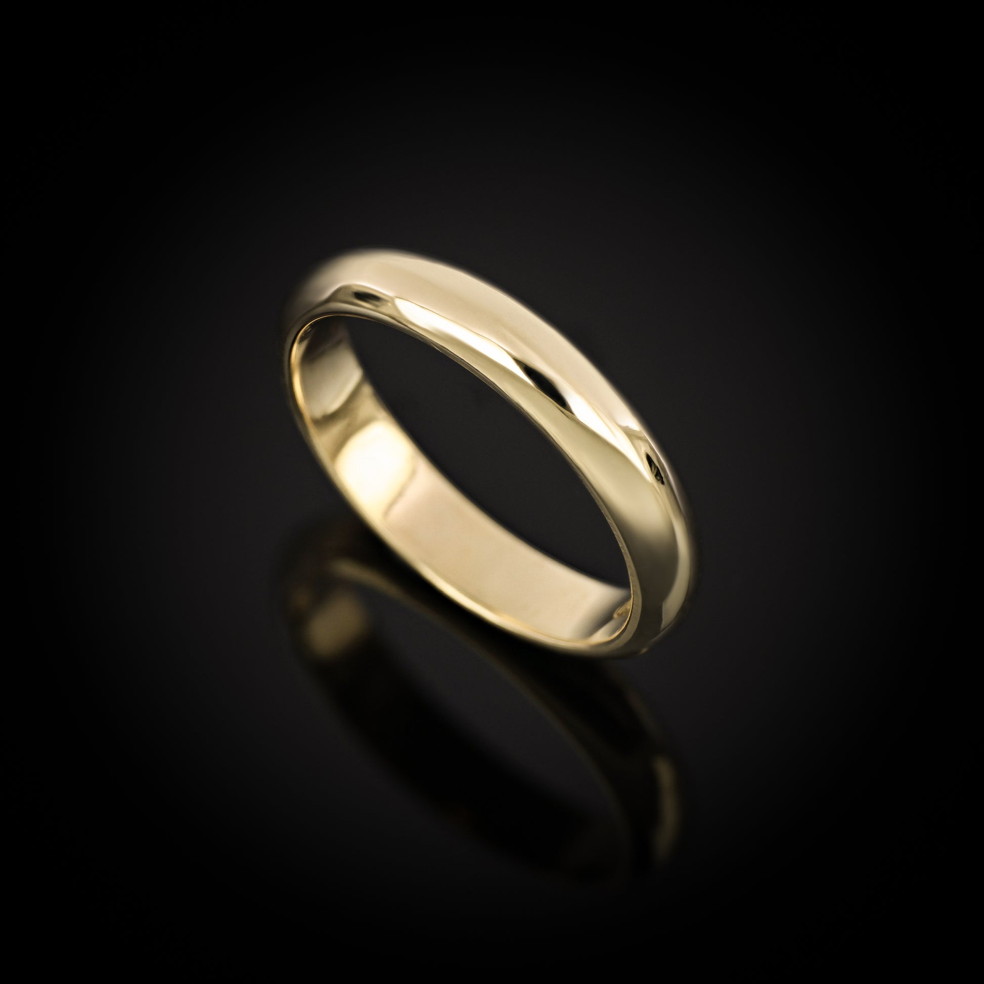 A timeless classic, this polished gold wedding band features a sleek, domed design and a comfort fit for all-day wear. Perfect for those seeking understated elegance and enduring quality.