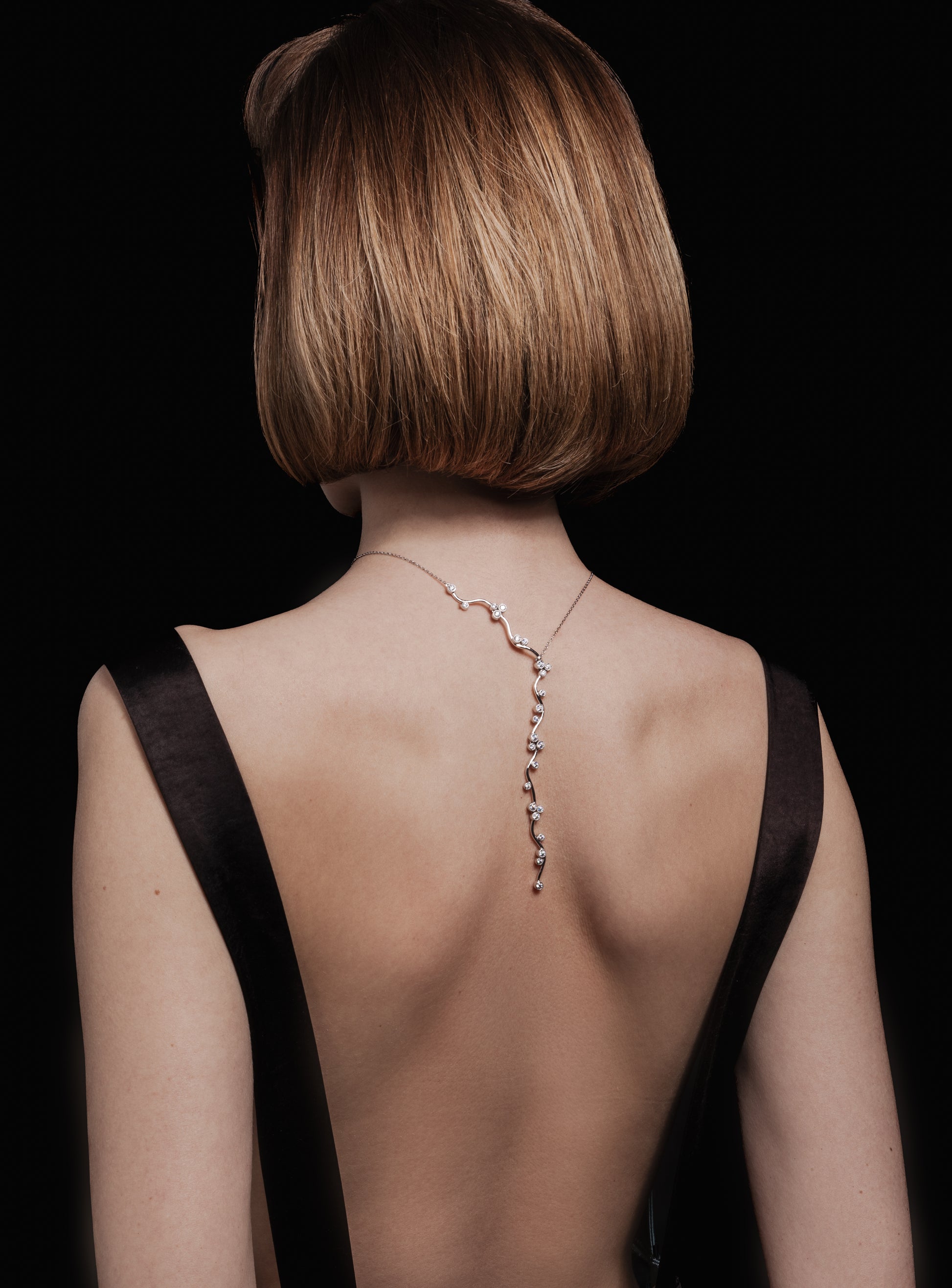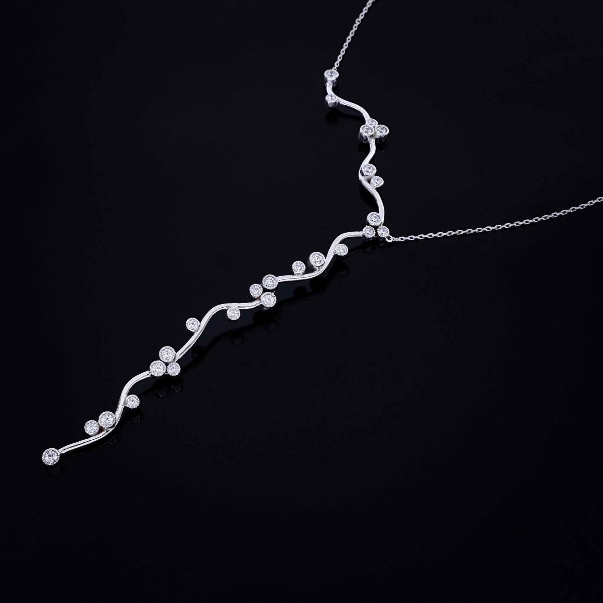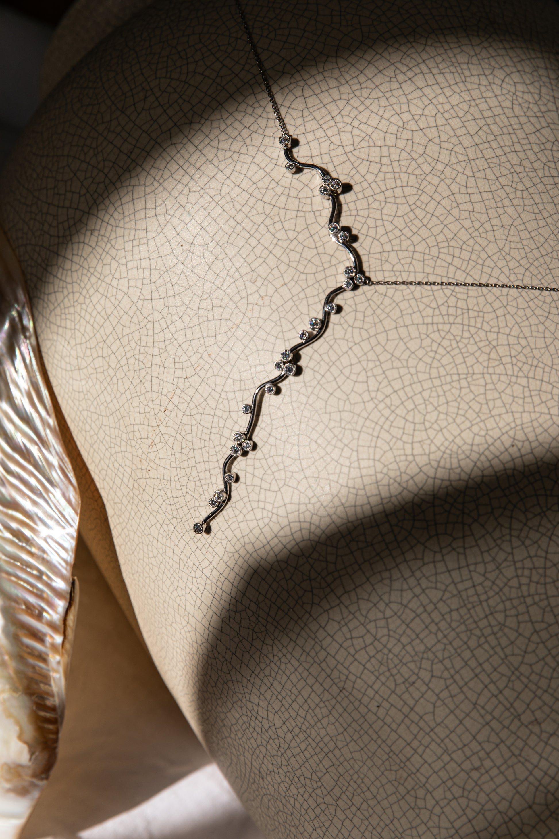 The signature piece of the Nayiri collection, a captivating masterpiece intricately crafted to embody luminosity and grace. With its intricate detailing and elegant design, this exquisite piece exudes sophistication and timeless elegance. Its elongated form, adorned with delicate embellishments, adds a touch of mesmerising beauty to any ensemble, effortlessly elevating your style with understated allure.